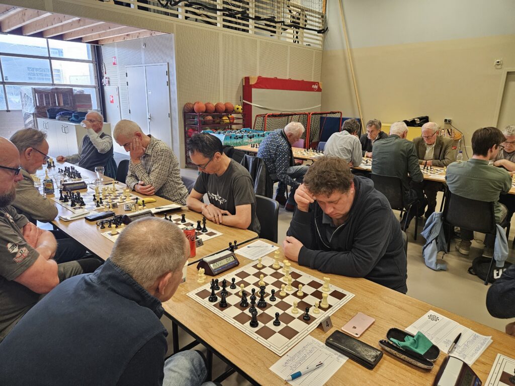 Robert Naasz kwam goed uit de opening en met secuur spel had de ASV-er een voordeel in het middenspel. Helaas ging het ergens in een afwikkeling mis. Robert zag zijn tegenstander twee torens en een loper voor de dame krijgen. Vrijpionnen gaven net te weinig compensatie. Robert kwam in een matnet terecht en moest het punt aan Fred Beumer laten. Ook bij Edwin Peters ging het mis. In een gelijkopgaande partij kwamen de stukken van Edwin wat onhandig te staan. Geroutineerd profiteerde Ron Engelen daarvan. Eerst ging er een kwaliteit verloren en na een afwikkeling restte een stelling met drie pionnen minder. 1,5-3,5.