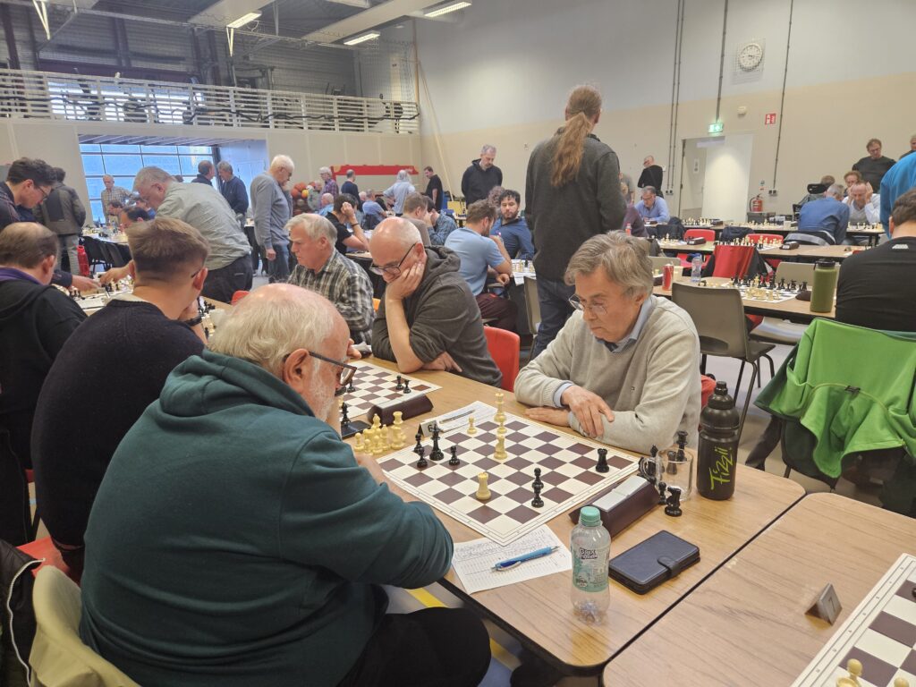 Désiré (met wit op bord 1) stond vrijwel de hele partij iets beter tot hij in gelijke stelling op de 36ste zet een loper afgaf en gedesillusioneerd opgaf.